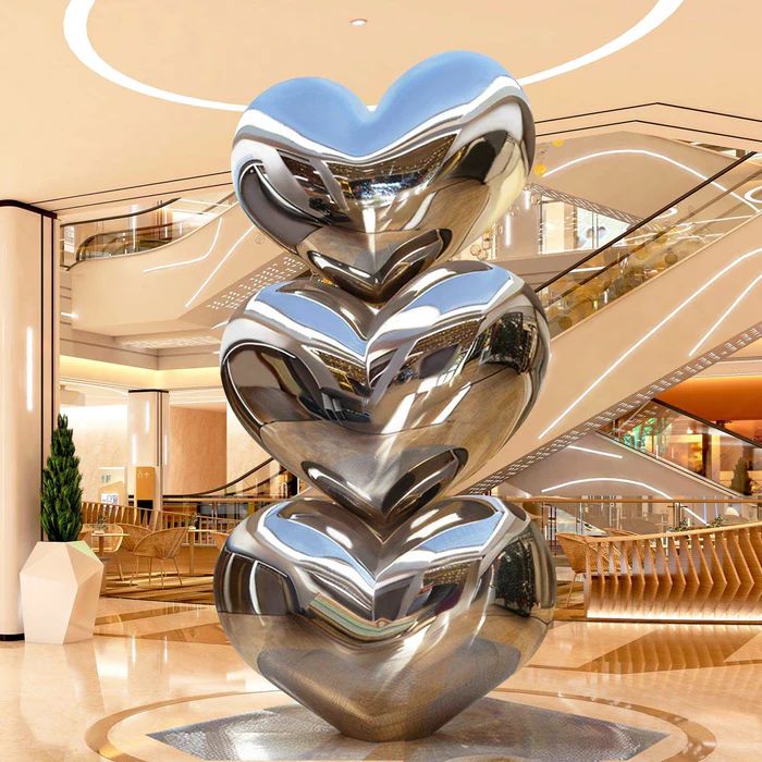 La scultura in acciaio inossidabile "Core in Stainless Steel" è una straordinaria opera d'arte progettata per elevare le decorazioni degli alberghi.Questa scultura presenta forme di cuori impilate che simboleggiano amore ed eleganza.Questa scultura è perfetta per aggiungere un tocco di raffinatezza e fascino agli spazi dell'hotel.e altre aree comuni, che lo rende un punto focale per ospiti e visitatori.