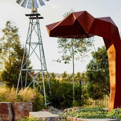 Realizzata in acciaio resistente alle intemperie, questa scultura cattura la forma dinamica di un serpente.La sua silhouette sorprendente e la sua evoluzione in patina arrugginita creano una potente affermazione visiva che attira l'attenzione.