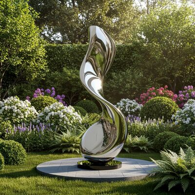 This towering spiral sculpture, crafted from high-grade 304/316 stainless steel with a flawless mirror polish, captures and reflects its surroundings — turning sunlight, greenery, and sky into living canvas. Its fluid, organic curves evoke motion and grace, making it a mesmerizing centerpiece in any setting. Ideal for landscape designers, hotel developers, private collectors, and public art installations. Custom heights and finishes available upon request.