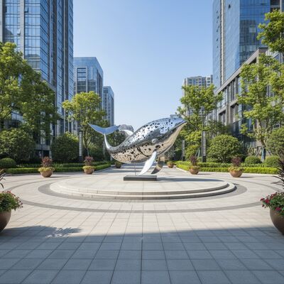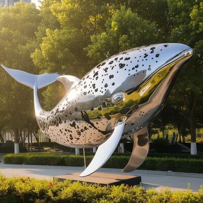 The sculpture features a unique and captivating design, combining a flawless mirror polished finish with an artistic dotted surface pattern. This creates a dynamic visual effect as the whale sculpture reflects its surroundings, making it a vibrant focal point in any setting. Perfect for garden, park, plaza, or commercial landscape projects, this metal artwork is more than just a statue; it's a statement piece that brings life and sophistication to your landscape and public space design.